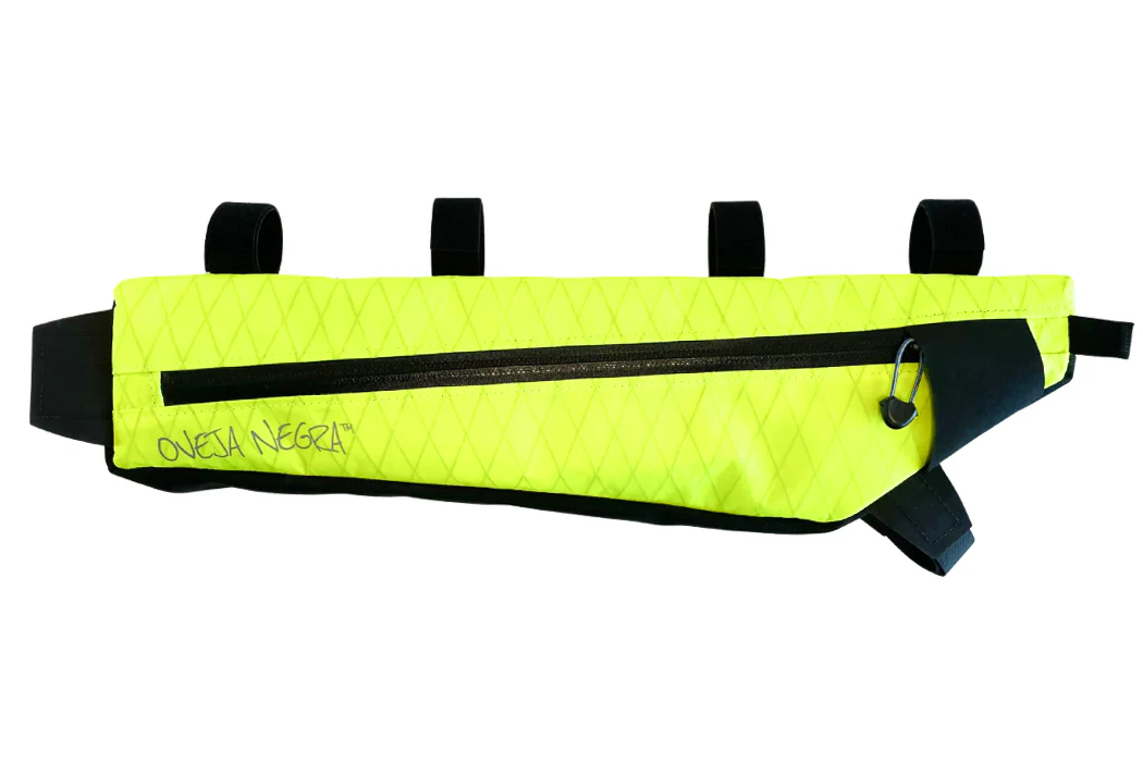- Fully adjustable/removable top tube strap design allows for the addition of top tube bags without conflicting strap placement allowing for easy customization