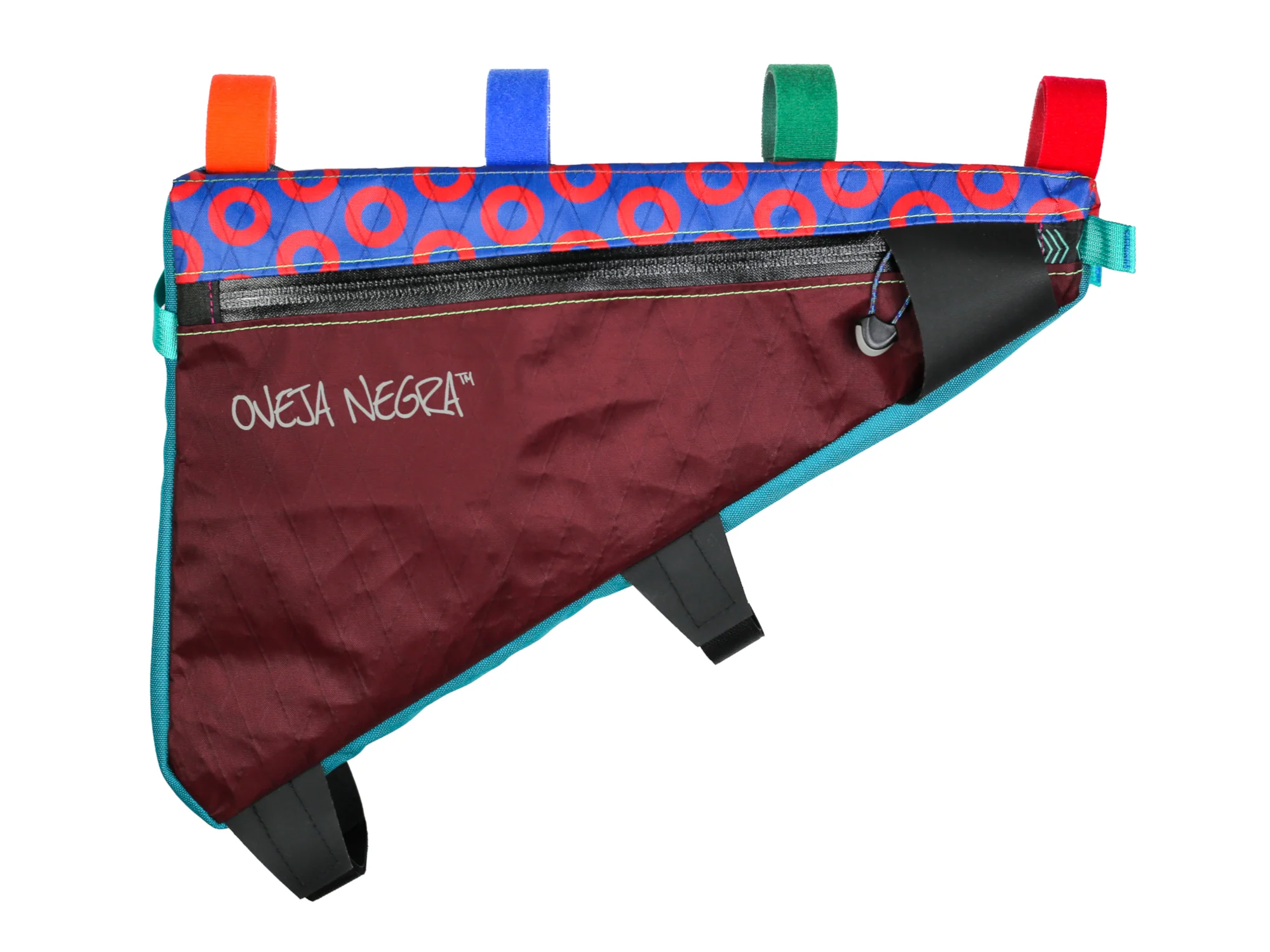 - Fully adjustable/removable top tube strap design allows for the addition of top tube bags without conflicting strap placement allowing for easy customization